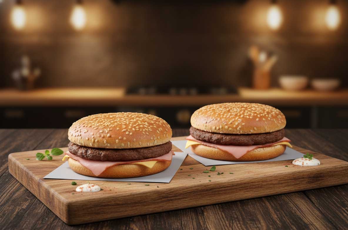 - Расширение ассортимента. Создавайте продукты, которые раньше было невозможно приготовить в СВЧ: бургеры с холодными овощами и горячим мясом, блинчики с мороженым или свежими ягодами, где начинка остается прохладной, а тесто — горячим и хрустящим.